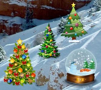Free Christmas Desktop Collection with 3 Christmas trees, snow and a snowball